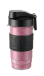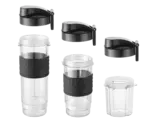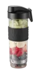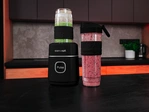 Mixovací lahve se dají snadno nasadit přímo na tělo smoothie makeru, což zajišťuje jednoduché a pohodlné použití. Jsou vybaveny praktickou to-go sadou, která obsahuje silikonový grip pro bezpečné držení a víčko s uchem a pítkem pro pohodlné pití na cestách. Díky tomuto designu si můžete svůj oblíbený nápoj vzít kamkoli bez obav z vylití.