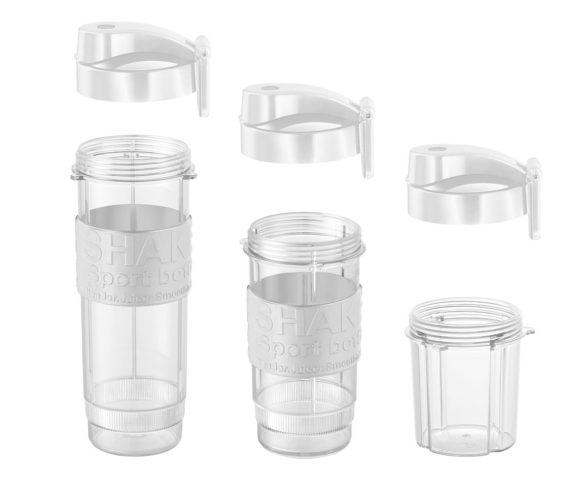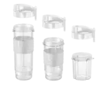 Mixovací lahve se dají snadno nasadit přímo na tělo smoothie makeru, což zajišťuje jednoduché a pohodlné použití. Jsou vybaveny praktickou to-go sadou, která obsahuje silikonový grip pro bezpečné držení a víčko s uchem a pítkem pro pohodlné pití na cestách. Díky tomuto designu si můžete svůj oblíbený nápoj vzít kamkoli bez obav z vylití.