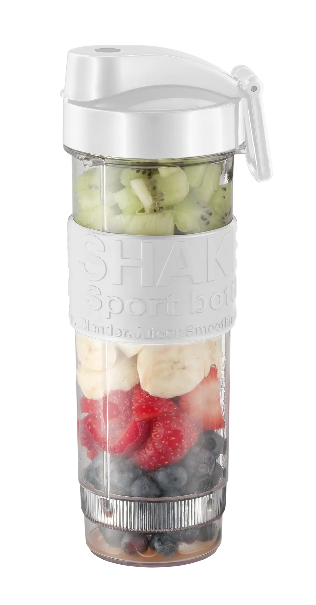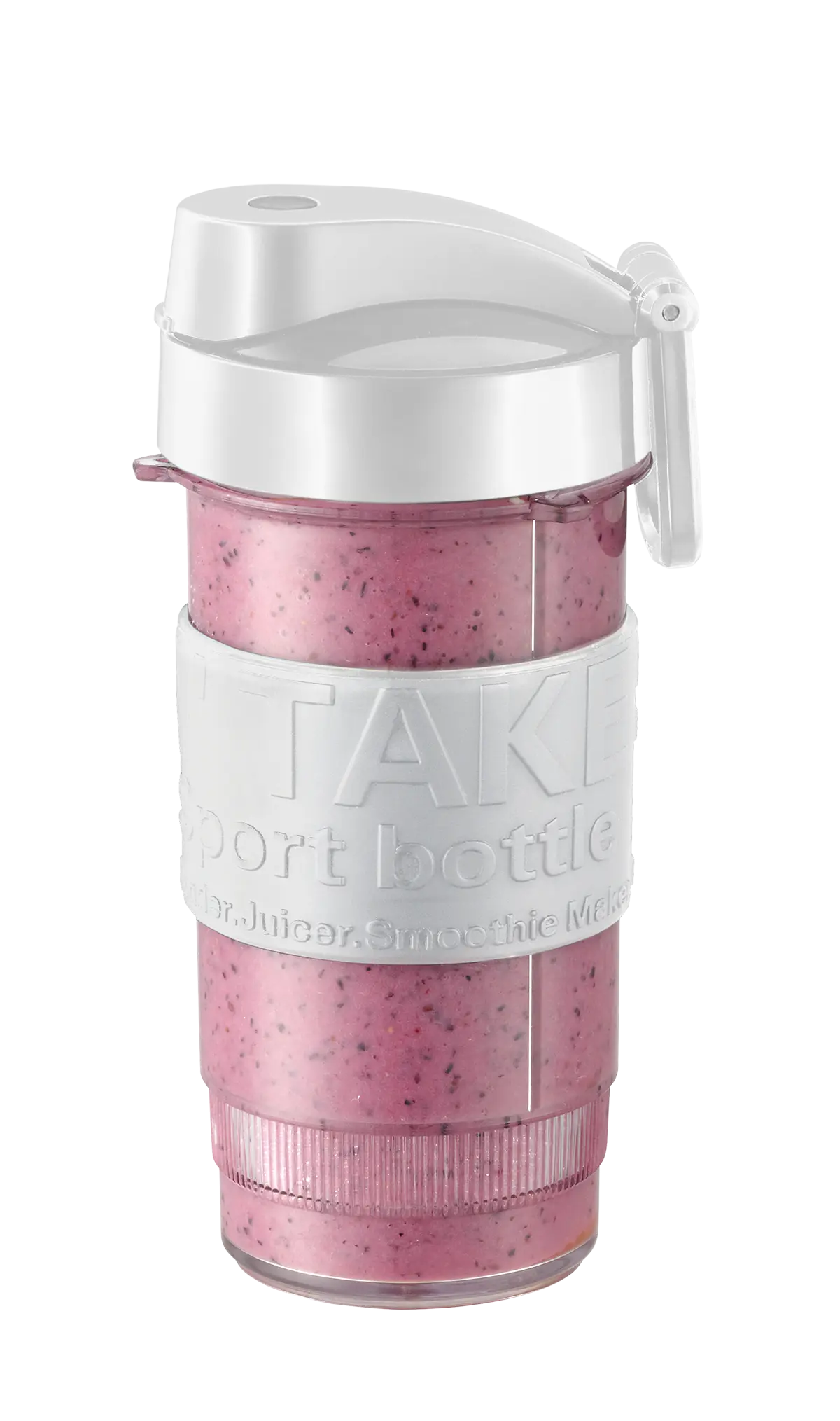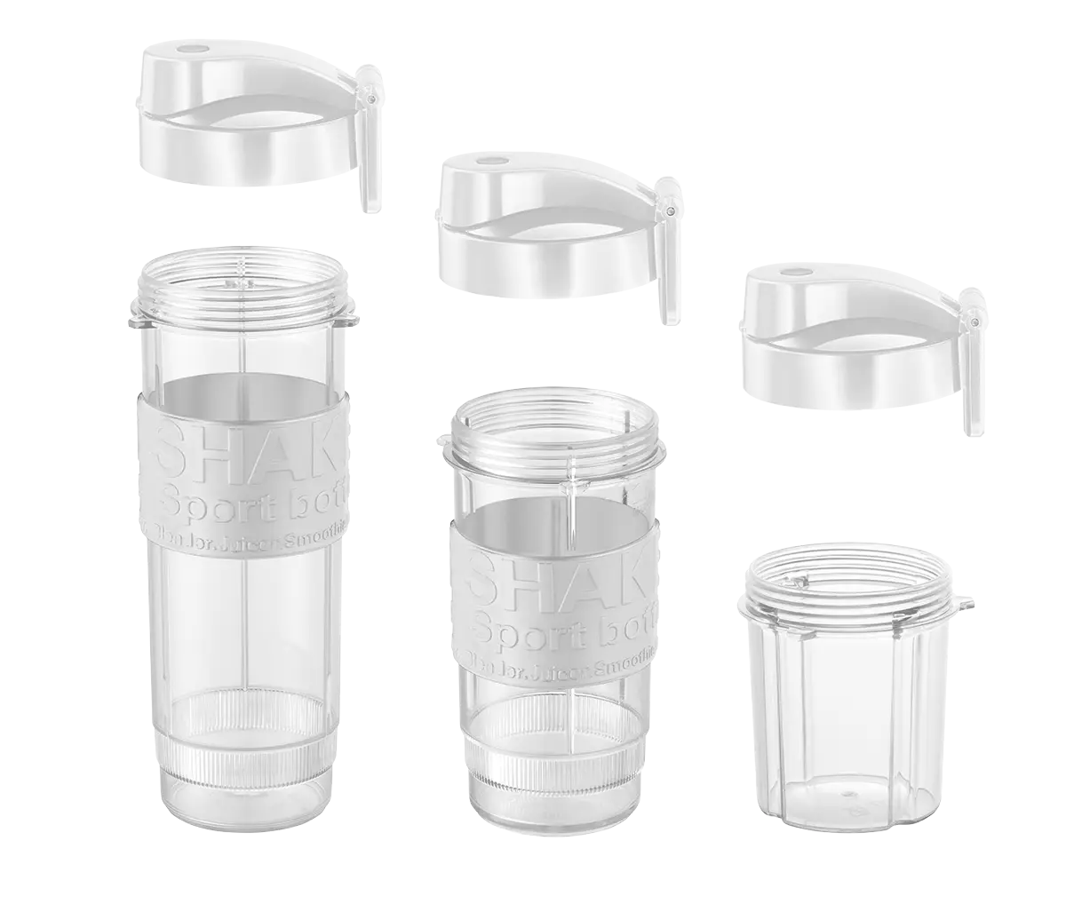 Mixovací lahve se dají snadno nasadit přímo na tělo smoothie makeru, což zajišťuje jednoduché a pohodlné použití. Jsou vybaveny praktickou to-go sadou, která obsahuje silikonový grip pro bezpečné držení a víčko s uchem a pítkem pro pohodlné pití na cestách. Díky tomuto designu si můžete svůj oblíbený nápoj vzít kamkoli bez obav z vylití.