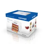 Digitální sušička ovoce Concept SO2050 s výkonem 500 W disponuje 6 nerezovými síty, plynulou regulací teploty a časovačem, dotykovým ovládáním a rovnoměrným sušením bez nutnosti prohazování plat.