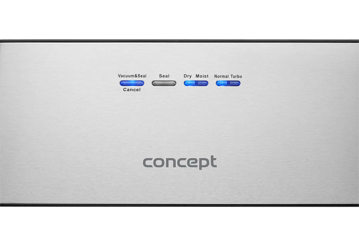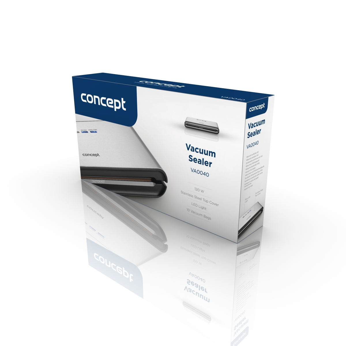 <b><p>Poškozený vnější obalový materiál. Výrobek je nový a nepoužívaný, ve 100% technickém a funkčním stavu s plnou zárukou 24 měsíců. Na tuto položku se nevztahují slevové akce a dárky.</p> </b> Vakuová svářečka fólií Concept VA0040 o příkonu 120 W prodlouží životnost vašich potravin. Nabízí 4 provozní režimy a je vhodná pro vakuování suchých i vlhkých potravin.