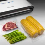 Vakuová svářečka fólií prodlouží životnost vašich potravin. Zamezí přístupu vzduchu, čímž zabraňuje ztrátě důležitých látek obsažených v potravinách a současně uchová jejich čerstvou chuť a aroma. Tímto způsobem skladování potravin zároveň šetříte místo ve vaší lednici i mrazáku. Vakuování můžete využít také při přípravě sous-vide nebo pro urychlení marinace masa. Součástí balení je 10 sáčků a praktický řezací nůž.