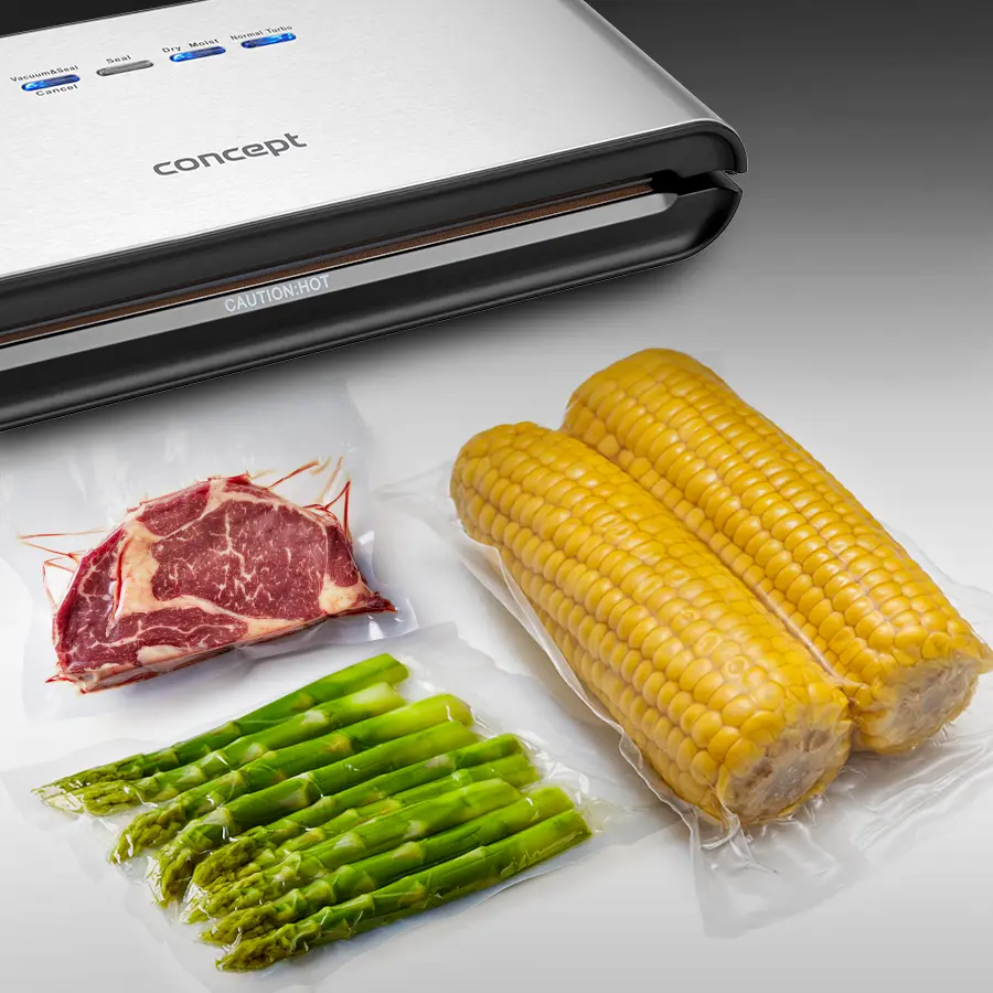 <b><p>Zánovní produkt je minimálně či jen krátkodobě používaný. Výrobek je v pořádku, může jevit známky použití. Na zboží se vztahuje plná záruka 24 měsíců. Na tuto položku se nevztahují slevové akce a dárky. </p> </b> Vakuová svářečka fólií Concept VA0040 o příkonu 120 W prodlouží životnost vašich potravin. Nabízí 4 provozní režimy a je vhodná pro vakuování suchých i vlhkých potravin.