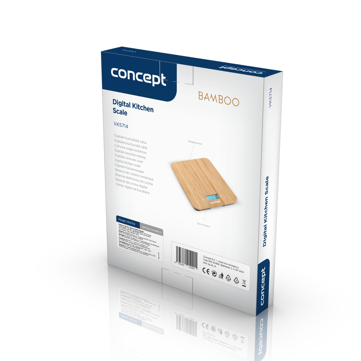 <b><p>Poškozený vnější obalový materiál. Výrobek je nový a nepoužívaný, ve 100% technickém a funkčním stavu s plnou zárukou 24 měsíců. Na tuto položku se nevztahují slevové akce a dárky.</p> </b> Digitální kuchyňská váha Concept VK5714 Bamboo nabízí nostnost 15 kg s přesností na 1 g. Je vybavena LCD displejem, budíkem, minutkou a disponuje praktickou funkcí pro dovažování tare. Vybírat můžete ze 4 jednotek - g/kg/oz/lb.