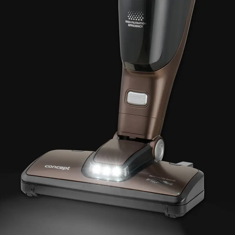 Akumulátorový tyčový vysavač Mighty VP4165 se stane vaším pomocníkem s efektivním úklidem celé domácnosti. Je osazen velmi kvalitním a výkonným DC motorem, který má zásluhu na vysokém sacím výkonu. Jednoduše a rychle s ním vysajete jakékoliv podlahy, a díky vyjímatelné ruční jednotce se dostanete i na těžko dostupná místa nebo vysajete drobné nečistoty z čalounění a nábytku. Vyniká designovým bronzovým vzhledem s moderním LED podsvícením na rukojeti.