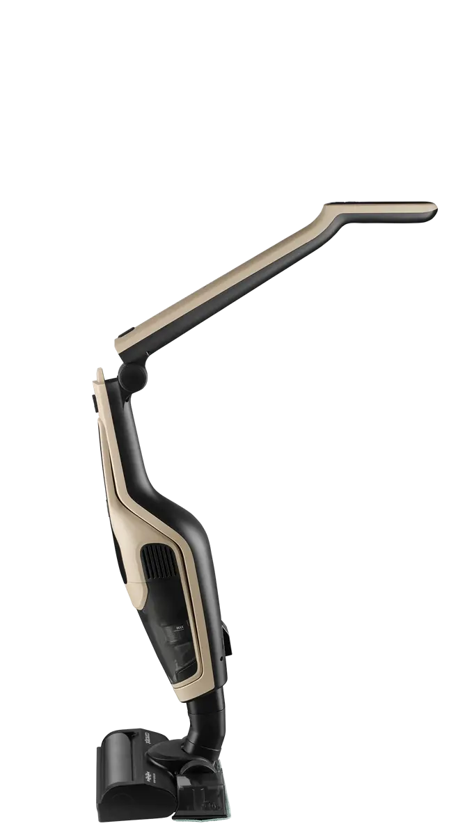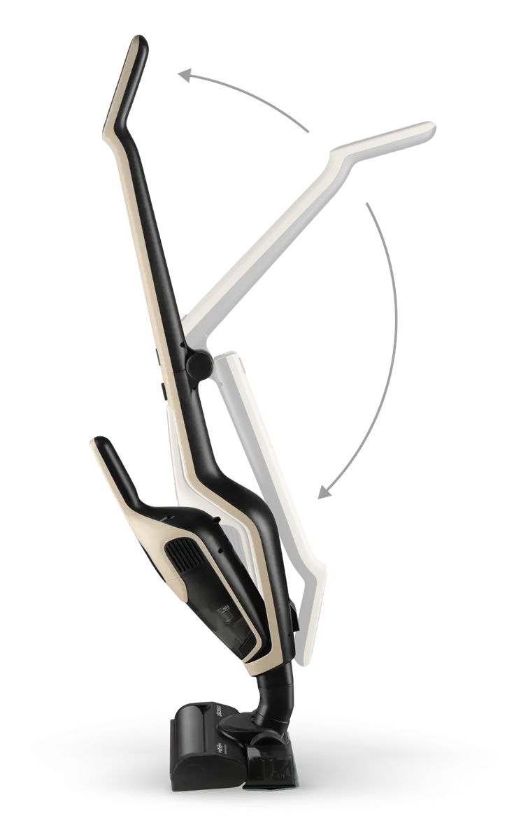 Tyčový vysavač je navržen s důrazem na praktičnost, a proto je vybaven sklopnou rukojetí, která výrazně usnadňuje jeho uskladnění i v menších prostorách. Po úklidu ho jednoduše složíte a uložíte třeba do skříně nebo za dveře. Součástí balení je také nabíjecí stojan, který nejen zajistí pohodlné dobíjení, ale zároveň slouží jako stabilní základna pro uložení vysavače včetně příslušenství.