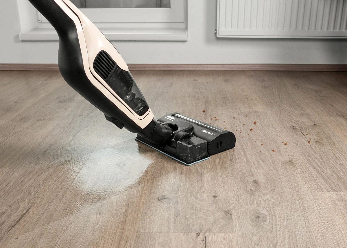Tyčový vysavač 3 v 1 Aquaglide Concept VP4220 zvládne vysávání i vytírání najednou, a to v jednom tahu. Stačí naplnit nádržku vodou, navlhčit mopovací textilii a můžete začít s úklidem. Mopovat je možné zároveň s vysáváním, nebo samostatně podle potřeby. Čisticí textilii lze jednoduše odejmout a vyprat v pračce, takže je vždy připravena na další použití.
