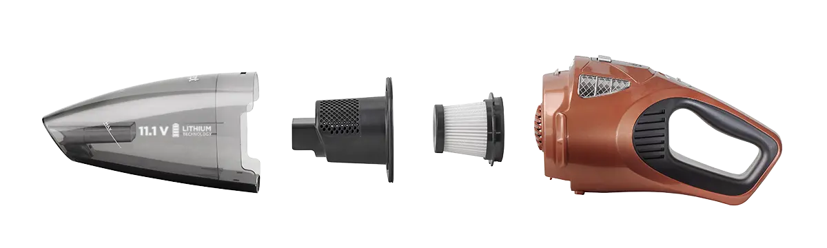 Čištění ručního vysavače VP4360 je velice rychlé a jednoduché. Stisknutím tlačítka oddělíte sběrnou nádobu, ve které se usazuje vysátý prach a další nečistoty. Nádobu stačí vyprázdnit o opět nasadit zpět. Během chvilky budete mít svého pomocníka opět plně k dispozici.