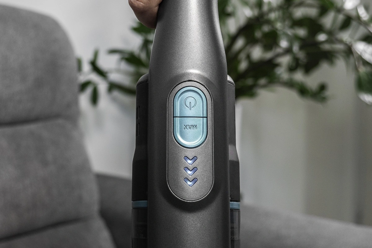Vysavač je osazen dobíjecí Li-Ion baterií s kapacitou 2200 mAh, která mu dává maximální volnost pohybu. K vysávání můžete volit ze dvou stupňů výkonu. Po spuštění pracuje v základním režimu, který je vhodný na běžný úklid tvrdých podlah. Sací síla vysavače dosahuje 10 kPa a výdrž na jedno nabití až 30 minut. Potřebujete-li vysát větší množství nečistot, můžete zvolit režim MAX se sací silou 20 kPa. Při použití maximálního výkonu se provozní doba vysavače zkracuje. O aktuálním stavu baterie vás informují 3 světelné kontrolky umístěné pod ovládacími tlačítky.
