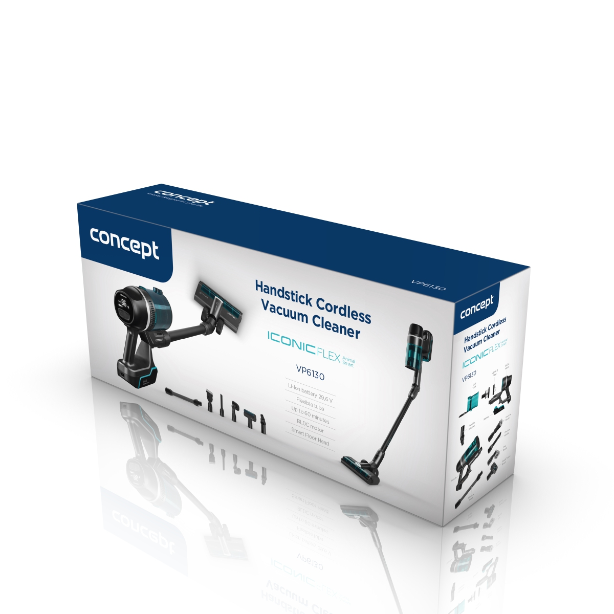 <b><p>Zánovní produkt je minimálně či jen krátkodobě používaný. Výrobek je v pořádku, může jevit známky použití. Na zboží se vztahuje plná záruka 24 měsíců. Na tuto položku se nevztahují slevové akce a dárky. </p> </b> Tyčový aku vysavač Concept VP6130 vyniká vysokým sacím výkonem, dlouhou výdrží a flexibilním využitím. Perfektně si poradí s každým povrchem a díky příslušenství je vhodný i do domácností se zvířaty. Je osazen vyjímatelnou baterií s výdrží až 60 min.