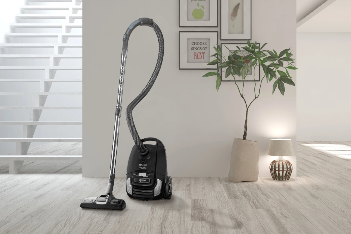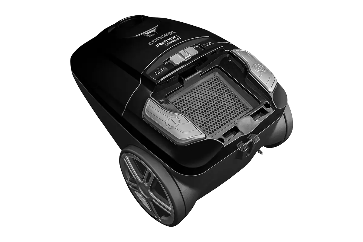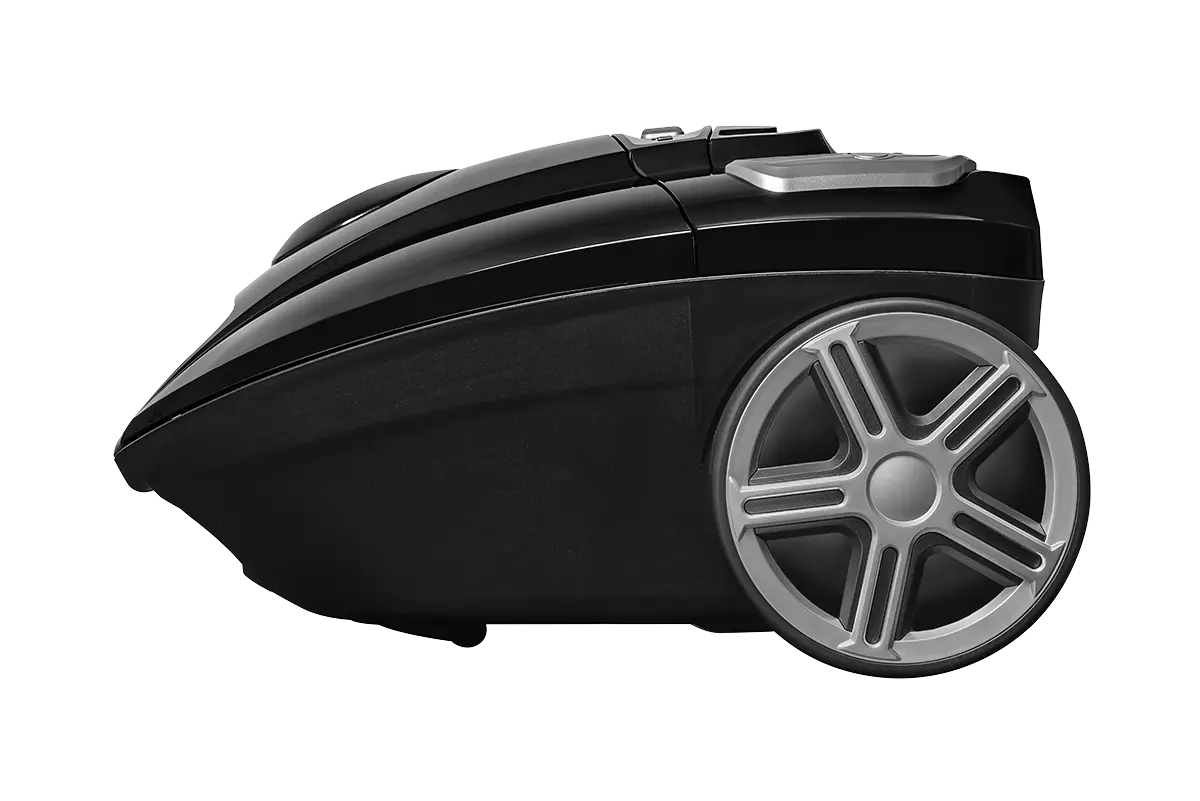 Elegantní design vysavače je podtrhnut chromovými prvky, které působí velmi esteticky. Díky přednímu, plně otočnému kolečku se vysavač hladce přizpůsobí každému vašemu pohybu. Pogumovaná zadní kola jsou šetrná k povrchu, takže nemusíte mít strach z poškrábání. Je vybaven praktickou rukojetí pro jednoduché přenášení a nabízí 2 parkovací polohy a 2 možnosti ukotvení podlahové hubice.