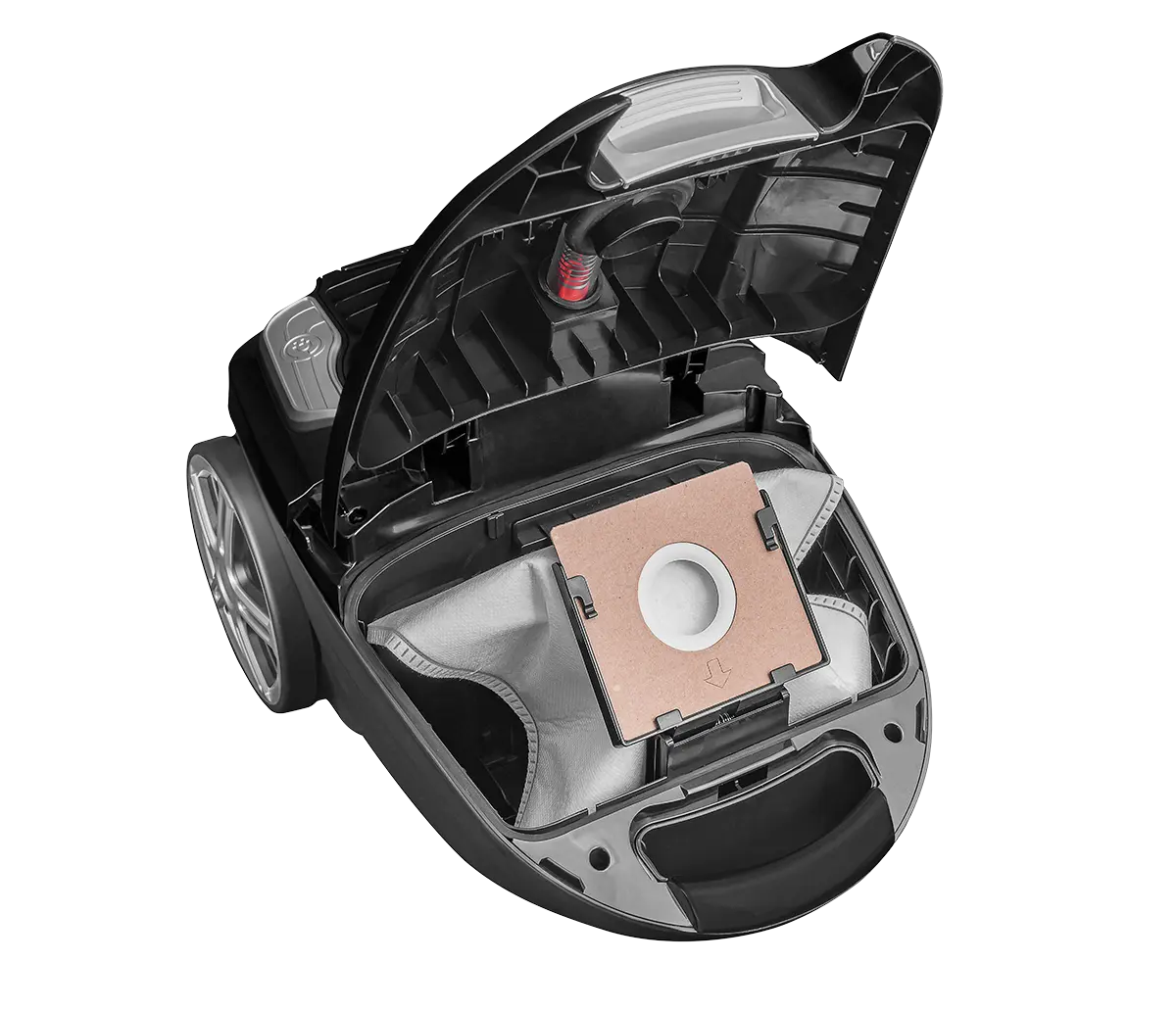 Extra velký sáček o objemu 3,5 l je vyroben z moderní SMS textilie, která má oproti klasickým papírovým sáčkům řadu nesporných výhod: má vysoké filtrační schopnosti, je ANTIBAKTERIÁLNÍ a nevadí jí zvýšená vlhkost. Šetří také motor vysavače. Vybavení vysavače HEPA filtrem 13 v místě, kde se vzduch vrací zpátky do místnosti, ocení zejména alergici. Filtr pohltí až 99,9 % roztočů, pylů a bakterií, které se během vysávání mohou dostat zpět do místnosti. Výsledkem je zdravější a čistější domácnost.