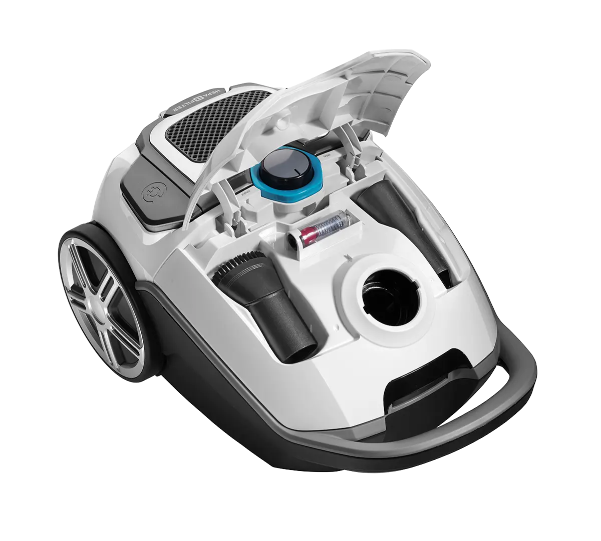 Tělo vysavače a pojezdová kolečka jsou osazeny chromovými prvky, které působí velmi esteticky. Vysavač je vybaven praktickým držadlem pro snadné přenášení a pogumovanou ergonomickou rukojetí pro pohodlné uklízení.
