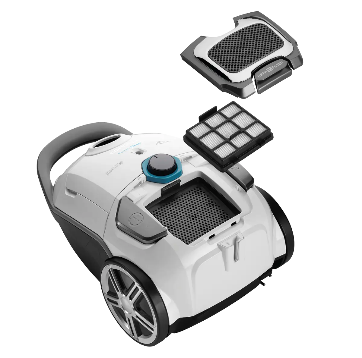 Díky akčnímu rádiu až 11 m nebudete mít problém dostat se na jakékoliv místo. Sáček o objemu 3 l je vyroben z moderní SMS textilie, která má oproti klasickým papírovým sáčkům řadu nesporných výhod: má vysoké filtrační schopnosti, je ANTIBAKTERIÁLNÍ, nevadí jí zvýšená vlhkost, a navíc šetří motor. Vysavač je vhodný pro alergiky. Omyvatelný HEPA filtr 13 zachytí i ty nejjemnější částice jako je prach nebo pyl.