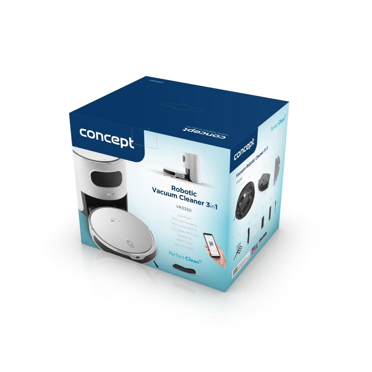 <b><p>Zánovní produkt je minimálně či jen krátkodobě používaný. Výrobek je v pořádku, může jevit známky použití. Na zboží se vztahuje plná záruka 24 měsíců. Na tuto položku se nevztahují slevové akce a dárky. </p> </b> Robotický vysavač s mopem 2v1 Concept VR3350 je chytře vymyšlený pro maximální komfort a pohodlí během úklidu. Je vybaven pokročilým způsobem mapování, který vaši domácnost naskenuje a rozdělí na jednotlivé místnosti. Dokáže vysávat i vytírat. S výškou pouhých 7,6 cm uklidí i pod nízkým nábytkem. Díky funkci automatického vysypávání obstará až 2 měsíce běžného úklidu bez nutnosti vysypávání nečistot. Poradí si i s vícepatrovou domácností.