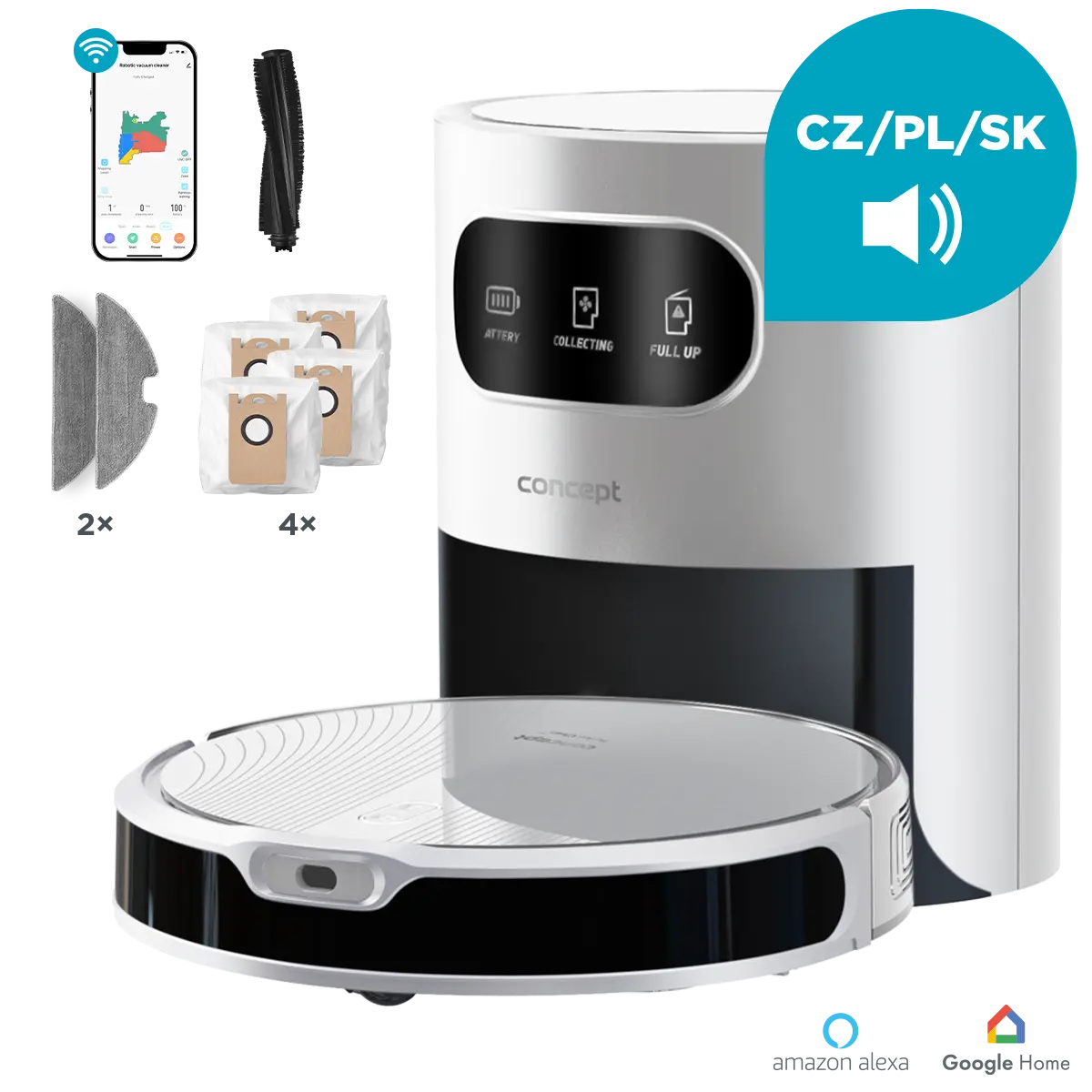 Robotický vysavač Concept VR3350 podporuje ovládání prostřednictvím hlasového asistenta Amazon Alexa nebo Google Home. Můžete ho tedy zapojit do své chytré domácnosti a ovládat hlasovými povely.