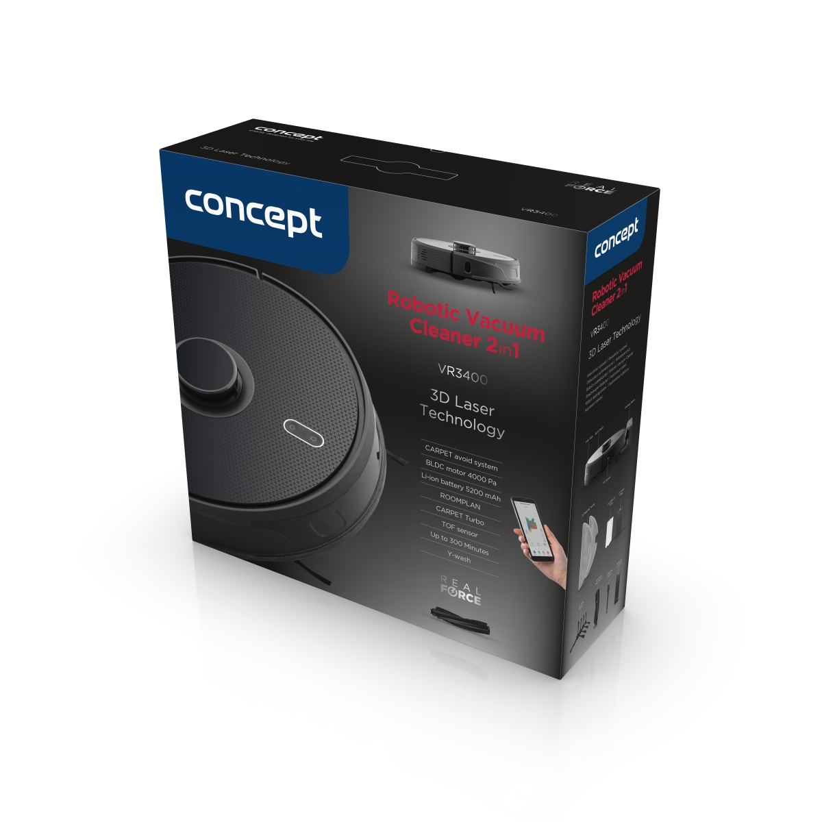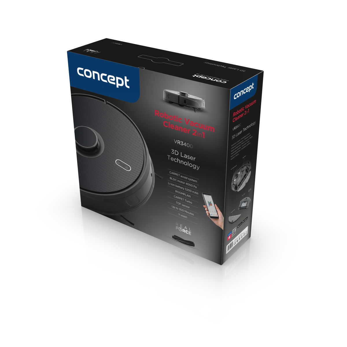 Robotický vysavač s mopem 2v1 Laser 3D Concept VR3400 Real Force