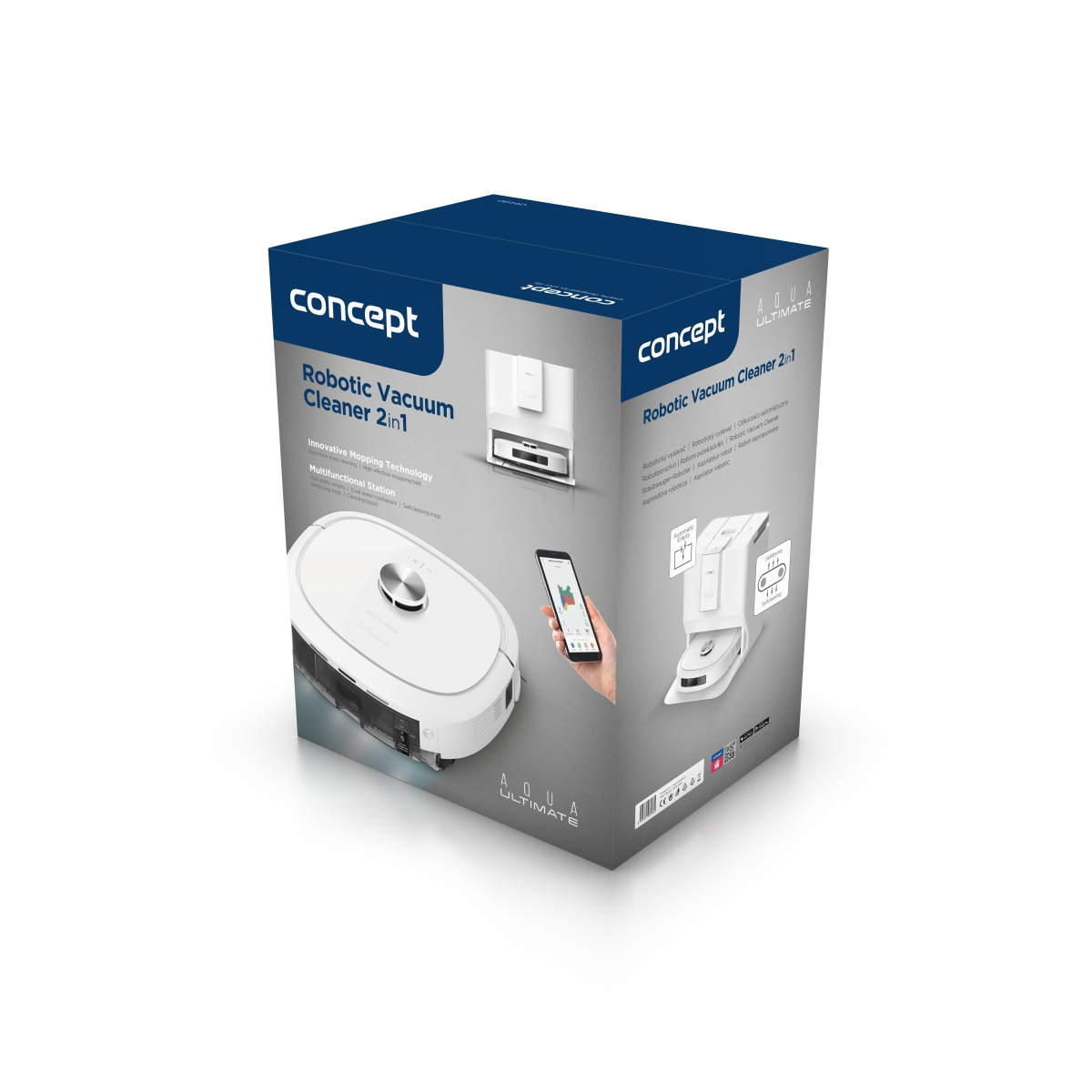 Robotický vysavač a podlahová myčka 2 v 1 Laser 3D Aqua ULTIMATE Concept VR4130 představuje jedinečné spojení robotického vysavače a podlahové myčky. Kombinuje účinné vysávání a precizní vytírání, takže podlahy budou nejen zbavené prachu, ale i skutečně čisté. Díky vysokému sacímu výkonu 15 kPa a pokročilé 3D laserové navigaci si poradí i v členitém prostoru a vyhne se i malým překážkám. Díky velkým kolům a silnému motoru překoná dveřní prahy a jiné překážky do výše až 2 cm. Jeho klíčovou výhodou je naprostá samostatnost - multifunkční stanice zvládne veškerou údržbu, od vyprázdnění prachového zásobníku až po důkladné vyčištění mopu. Stačí vysavač uvést do provozu a o zbytek se postará sám.