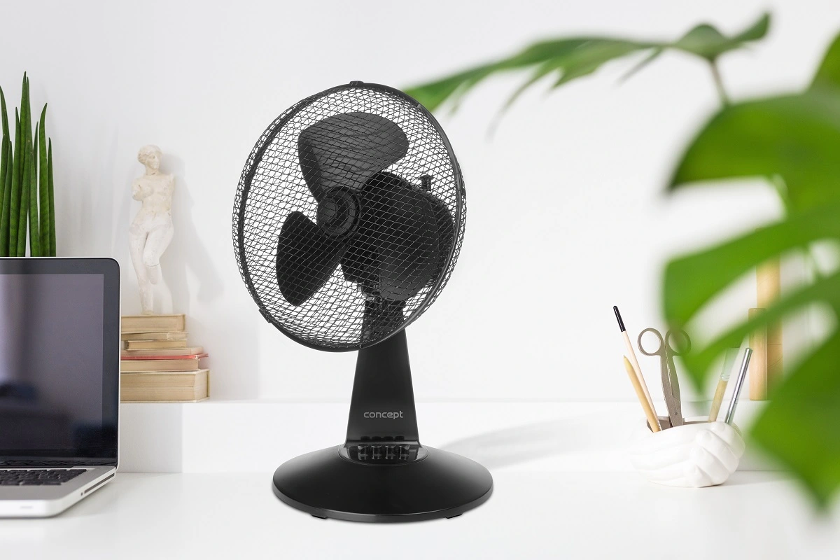 Stolní ventilátor Concept VS5041 nabízí 3 rychlosti proudění vzduchu. Hlava ventilátoru je osazena třemi lopatkami a umožňuje nasměrování podle vašich potřeb – horizontálně i vertikálně. Rovnoměrné šíření chladného vzduchu po místnosti zajistí funkce oscilace s úhlem otáčení 80 ± 5 °.