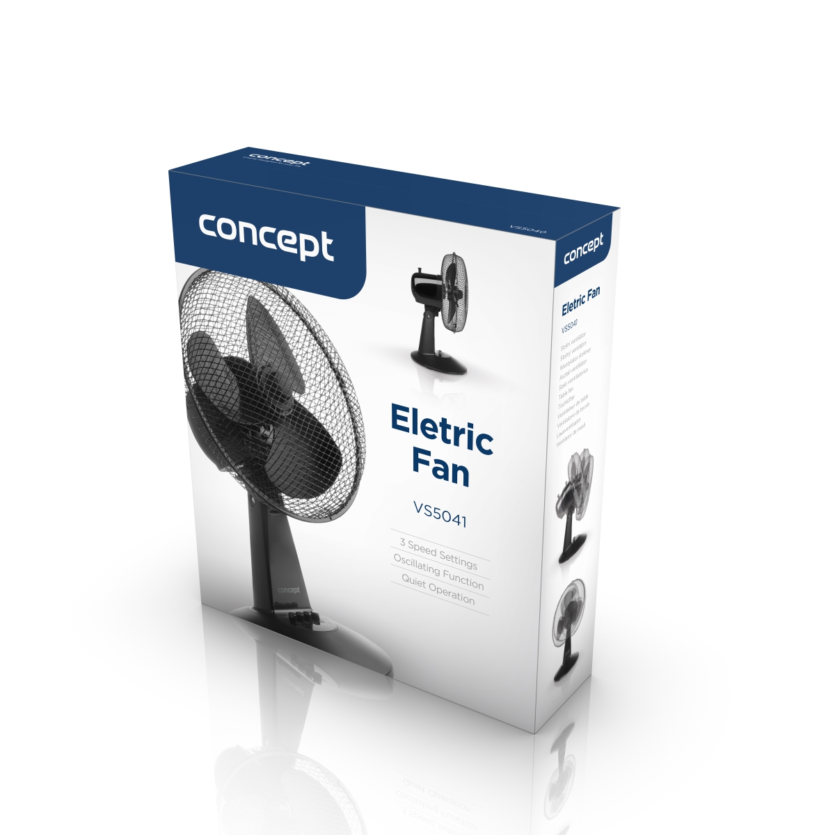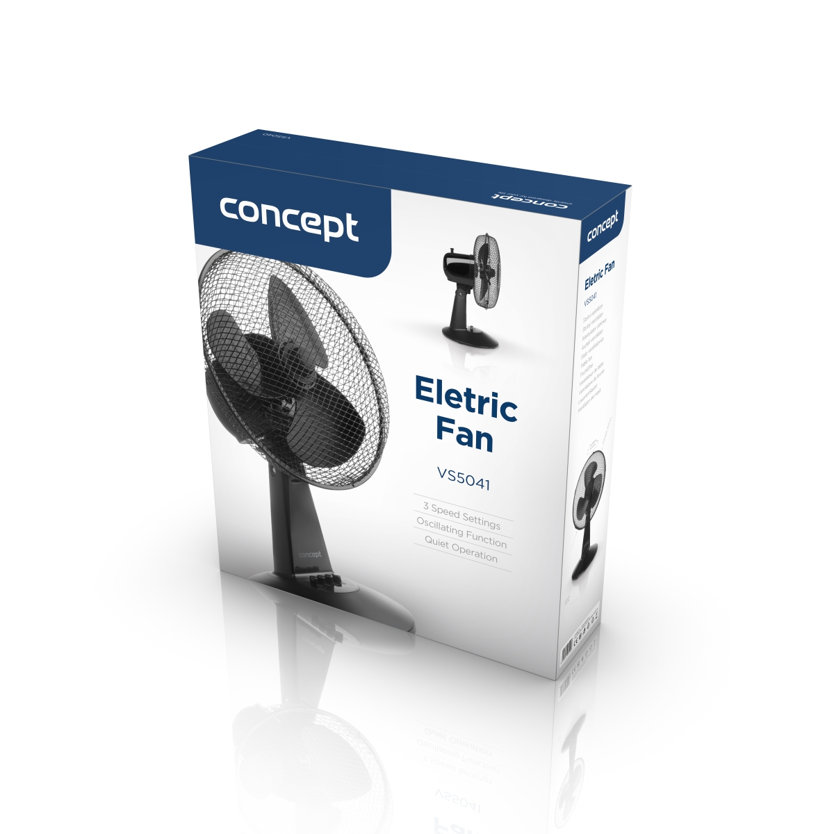 <b><p>Poškozený vnější obalový materiál. Výrobek je nový a nepoužívaný, ve 100% technickém a funkčním stavu s plnou zárukou 24 měsíců. Na tuto položku se nevztahují slevové akce a dárky.</p> </b> Stolní letní ventilátor Concept VS5041 nabízí 3 rychlosti, možnost oscilace, nastavitelný sklon a velmi tichý chod.