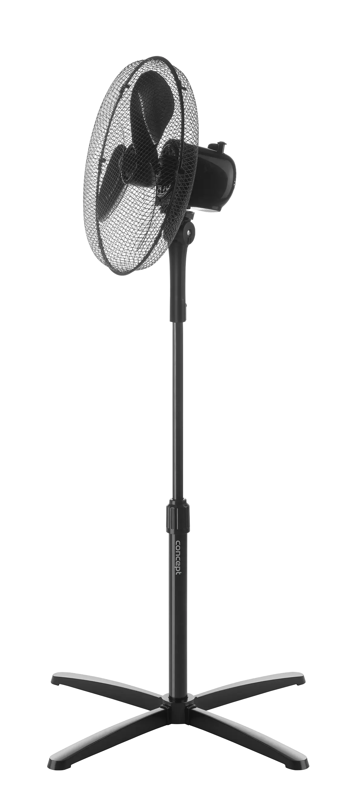 Stojanový letní ventilátor Concept VS5050 nabízí 3 rychlosti, možnost oscilace a nastavitelnou výšku. Je osazen sklopnou vrtulí o průměru 35 cm a vyniká velmi tichým chodem.
