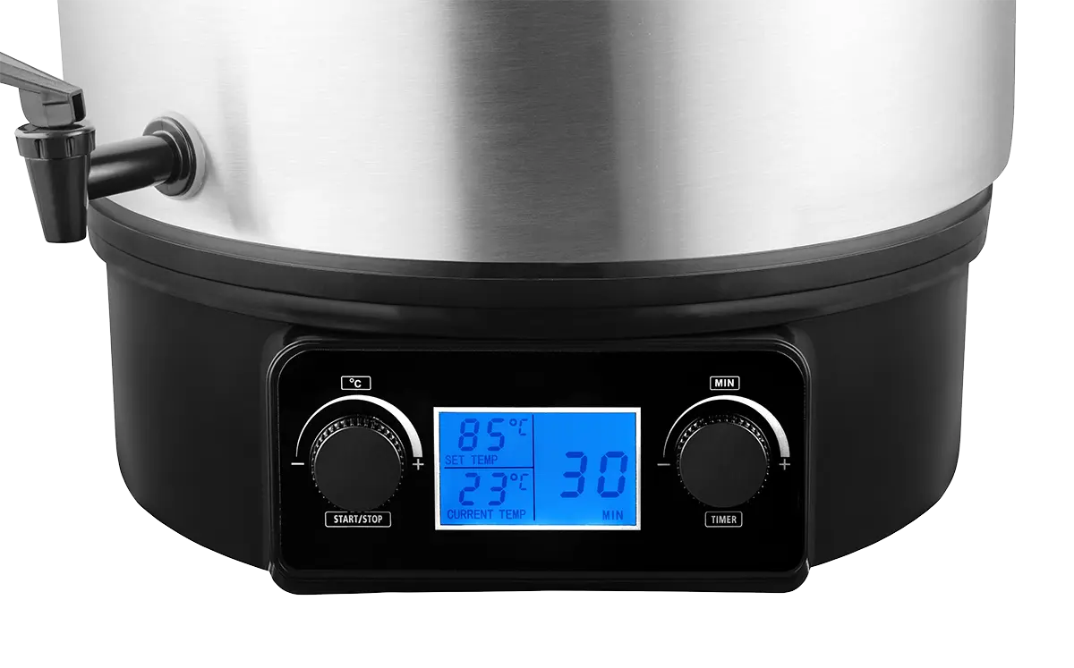 Zavařovací hrnec ZH0040 je plně automatický. Disponuje dvěma ovládacími knoflíky pro nastavení teploty a času. Teplotu můžete plynule regulovat od 30 do 100 °C a časový spínač umožňuje nastavení v rozmezí od 1 do 120 minut nebo lze zvolit nepřetržitý provoz. Nastavené údaje můžete kontrolovat na přehledném LCD displeji. Na konec programu vás upozorní zvuková signalizace.