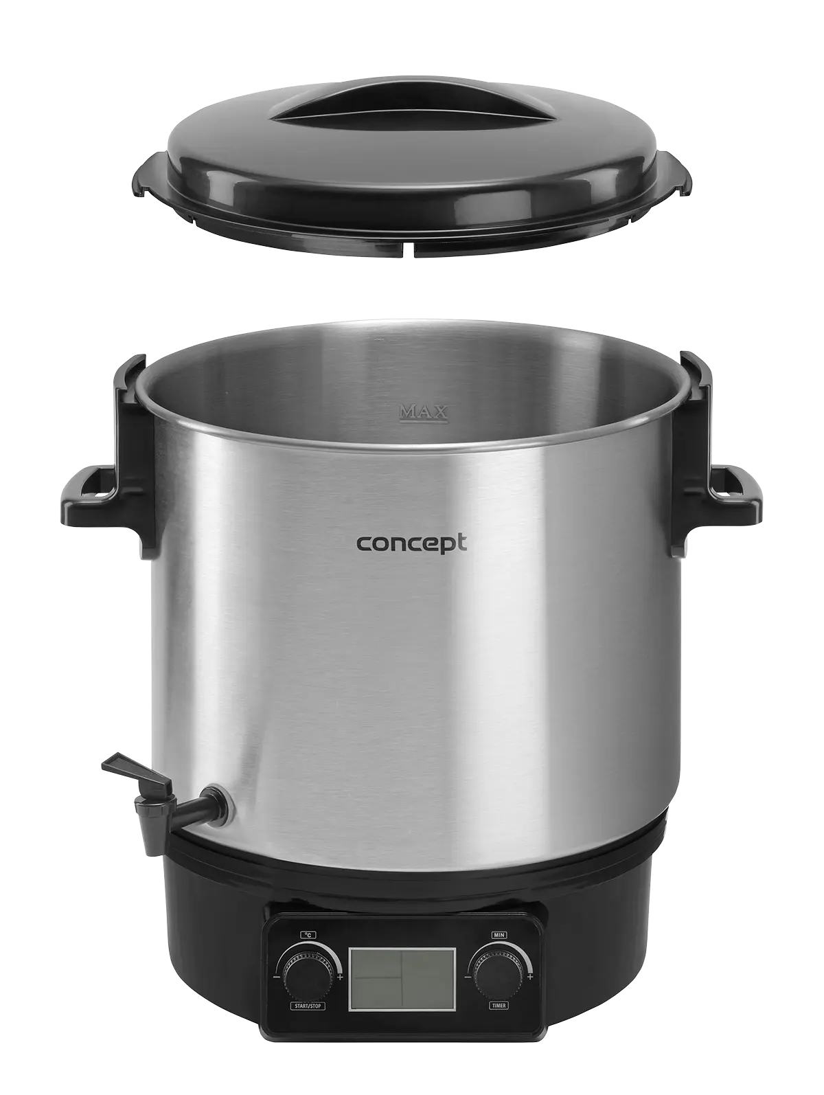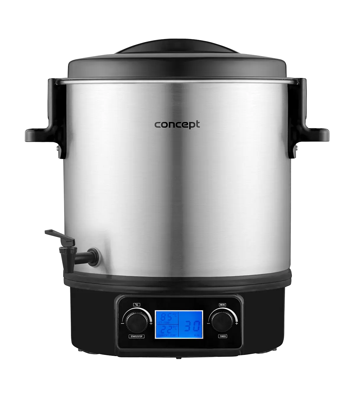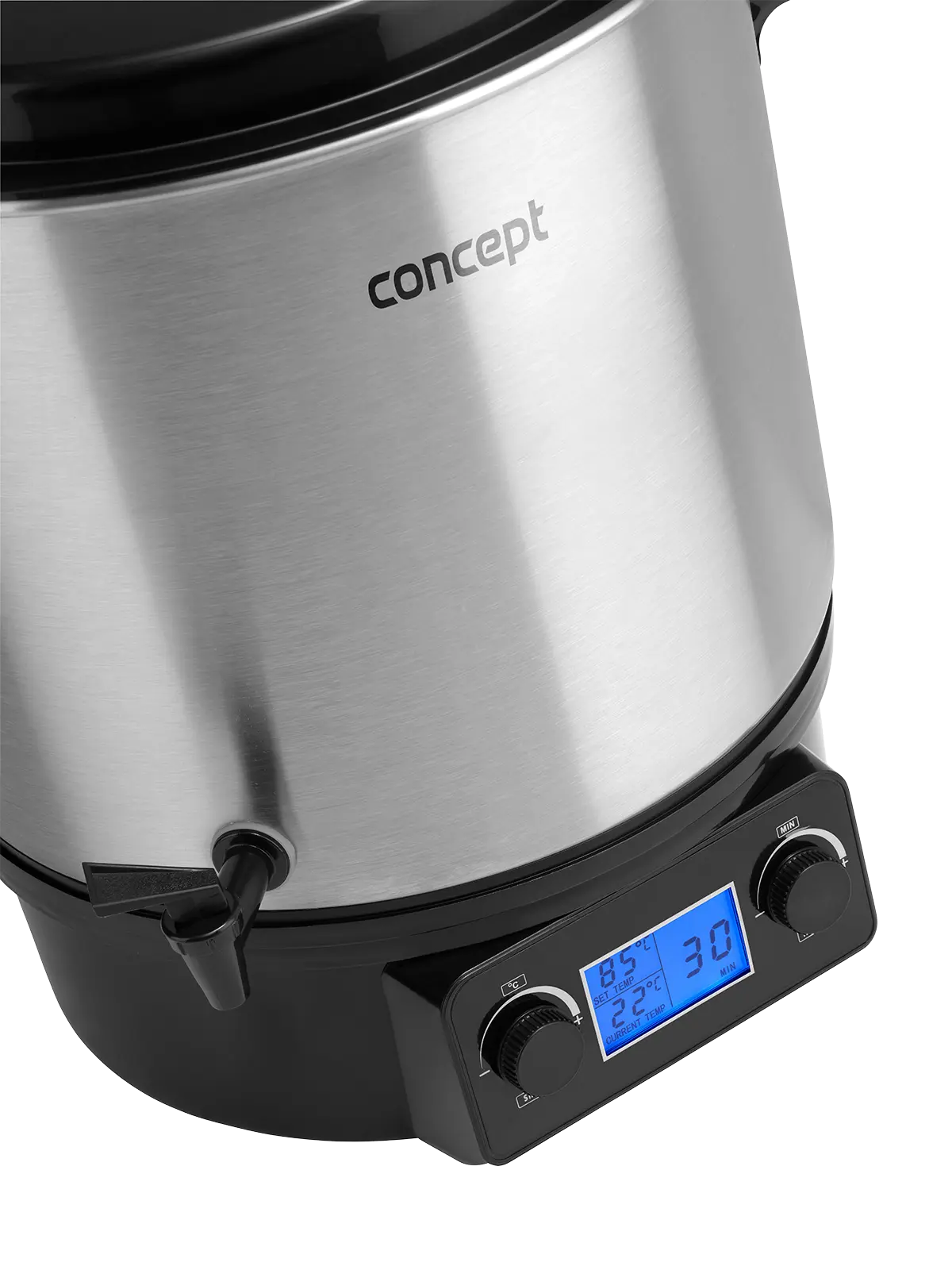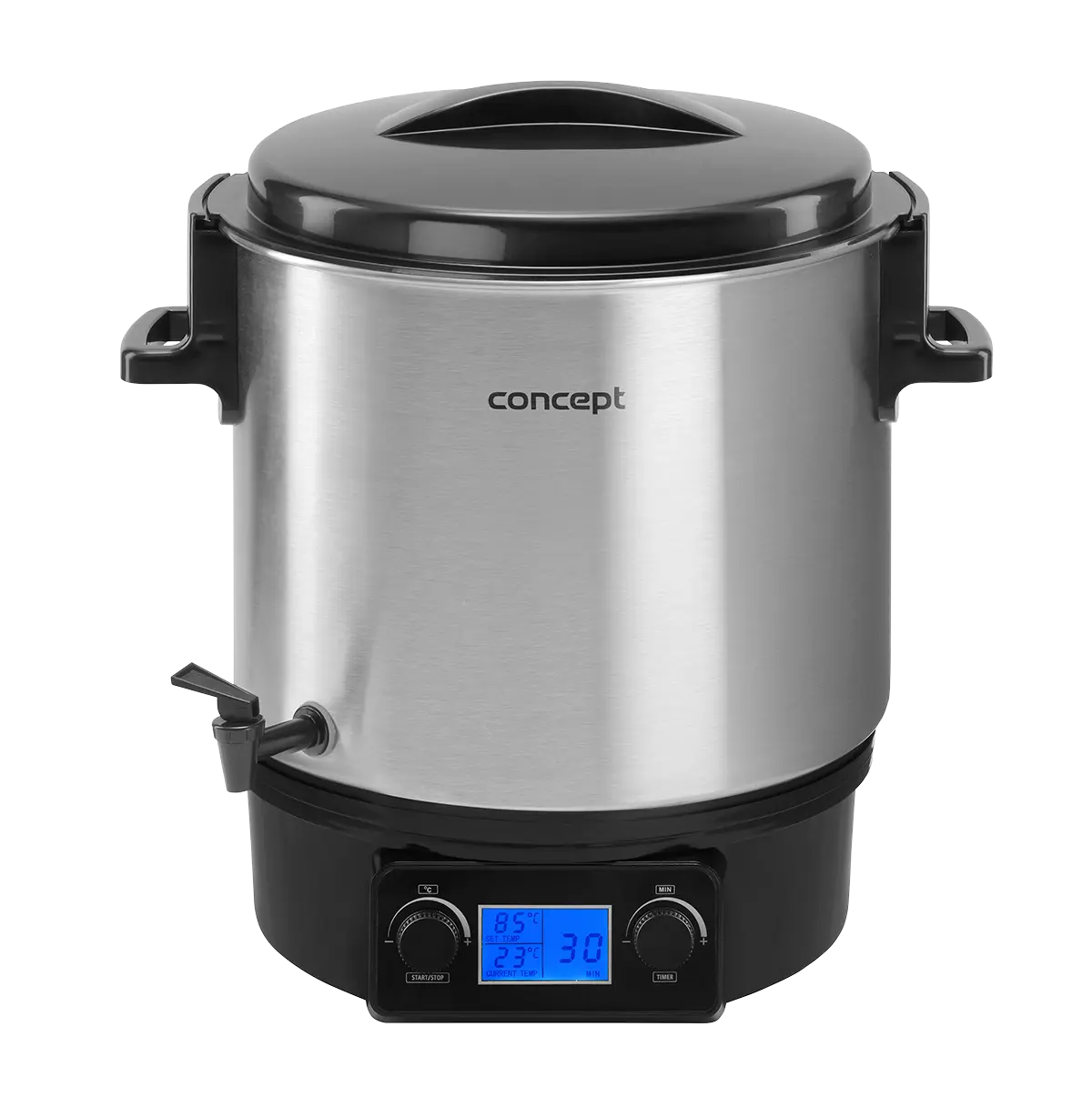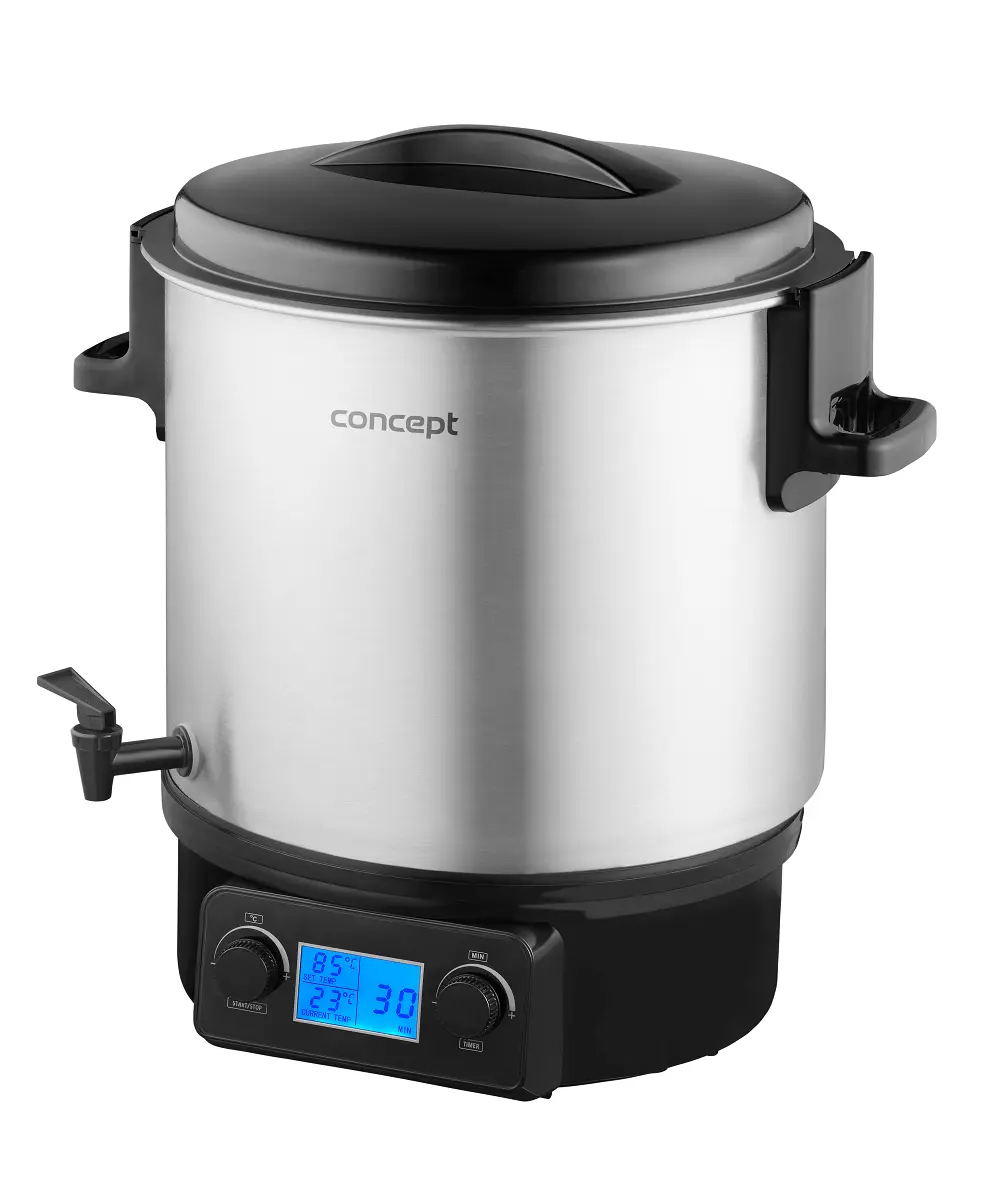 <b><p>Poškozený vnější obalový materiál. Výrobek je nový a nepoužívaný, ve 100% technickém a funkčním stavu s plnou zárukou 24 měsíců. Na tuto položku se nevztahují slevové akce a dárky.</p> </b> Zavařovací hrnec Concept ZH0040 s objemem 27 l nabízí plynulé nastavení teploty v rozmezí od 30 - 100 °C a pomůže vám se zavařováním ovoce, zeleniny, hub i masa, výrobou šťáv nebo přípravou horkých nápojů. Je vybaven funkcí Keep Warm a časovačem.